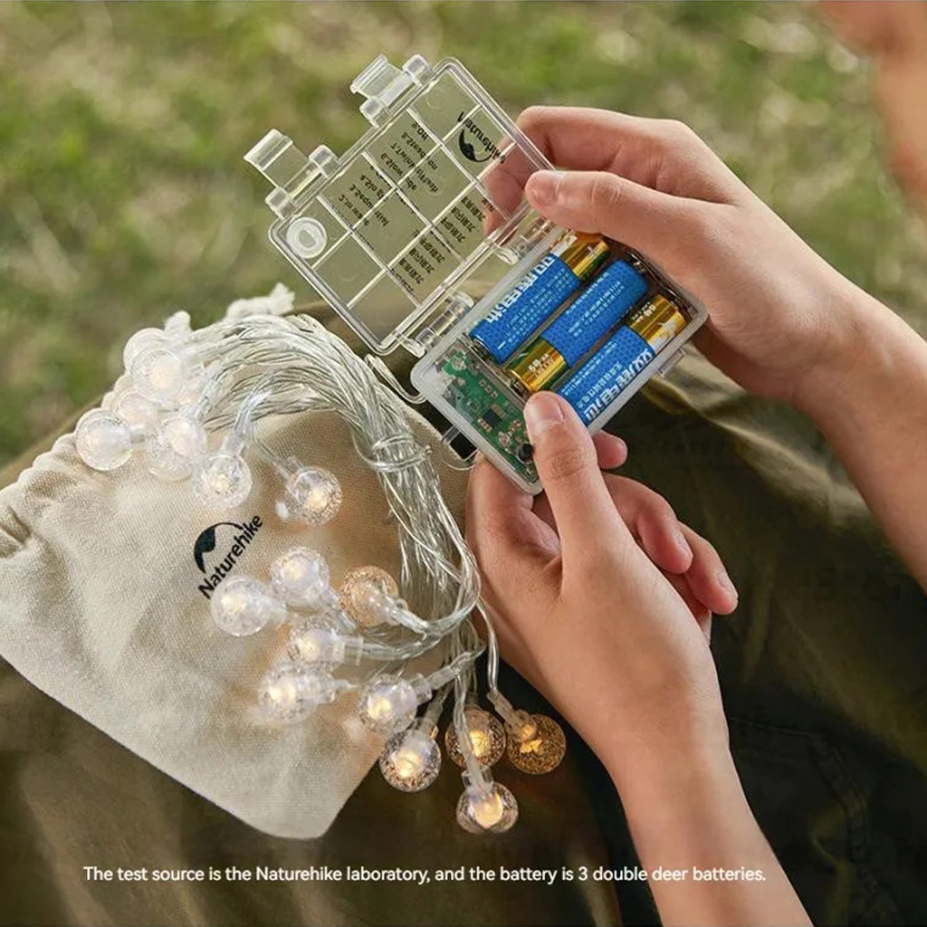 این ریسه 10 متری با 80 لامپ کریستالی کوچیک طراحی شده؛ لامپها حدود 2.3 سانت هستن و هر 10 سانت یکبار روی سیم مسی قرار گرفتن. انرژی ریسه با سه باتری قلمی AA تامین میشه و با یه دکمه ساده، میتونی بین 8 حالت نوردهی مختلف جابهجا بشی. وزن سبک، ابعاد جمعوجور و کیسه پارچهای همراهش باعث میشه خیلی راحت توی سفر یا کمپینگ هم همراهت باشه.